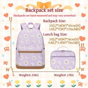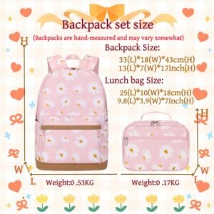 2Pcs Daisy Prints Backpack Sets for Girl Bookbag Primary Schoolbag Elementary Students Daypack with Lunch Bag