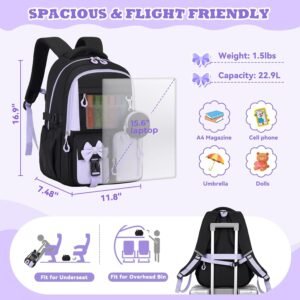 Backpack for School, Kids Backpacks for Girls, Girls Cute Bookbag for Teens, Schoolbag for Elementary Middle School Students, Girl Backpacks Ages 6-8, With Coin Purse, Travel, Camp,Black Purple