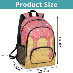 School Backpack Casual Bookbag with Multiple Pockets 18 inch Laptop Backpacks for Travel Hiking, Schoolbag for Students Girls Boys Women Men, Pink Ice Cream