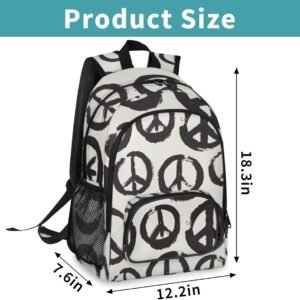 School Backpack Casual Bookbag with Multiple Pockets 18 inch Laptop Backpacks for Travel Hiking, Schoolbag for Students Girls Boys Women Men, Peace Sign