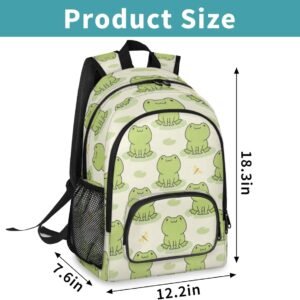 School Backpack Frogs Casual Bookbag with Multiple Pockets 18 inch Laptop Backpacks for Travel Hiking, Schoolbag for Students Girls Boys Women Men, Green Frog Animal