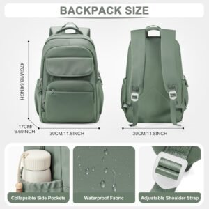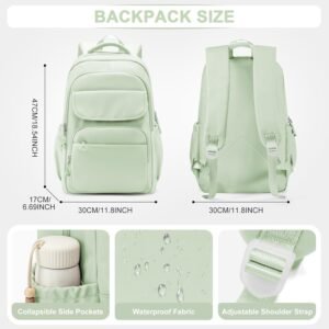 Cute School Backpack for Teens Girls Boys Waterproof School Bag Basic Backpack for College Students Multi Pocket Backpack Lightweight Casual Daypack Backpacks for Women Men(Green)