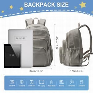 School Backpack For Women Men, Lightweight Casual Daypack College Backpacks, Aesthetic Students Bookbag, Backpack With Lots Of Pockets,Cute High School Bag For Boys Girls(Gray Brown)