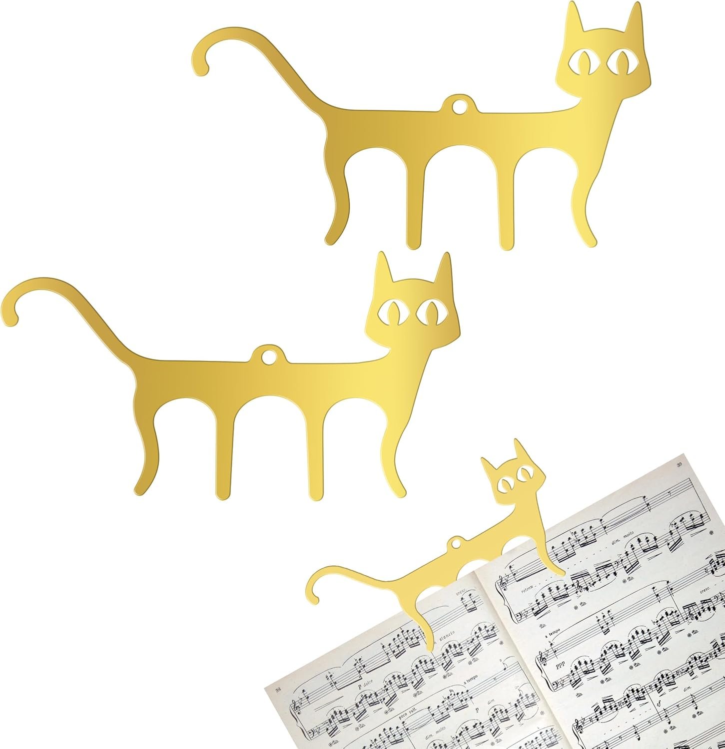 2 PCS Metal Music Book Clips Page Holders Cute Cat Shaped Bookmark for Piano Keyboard Reading Golden