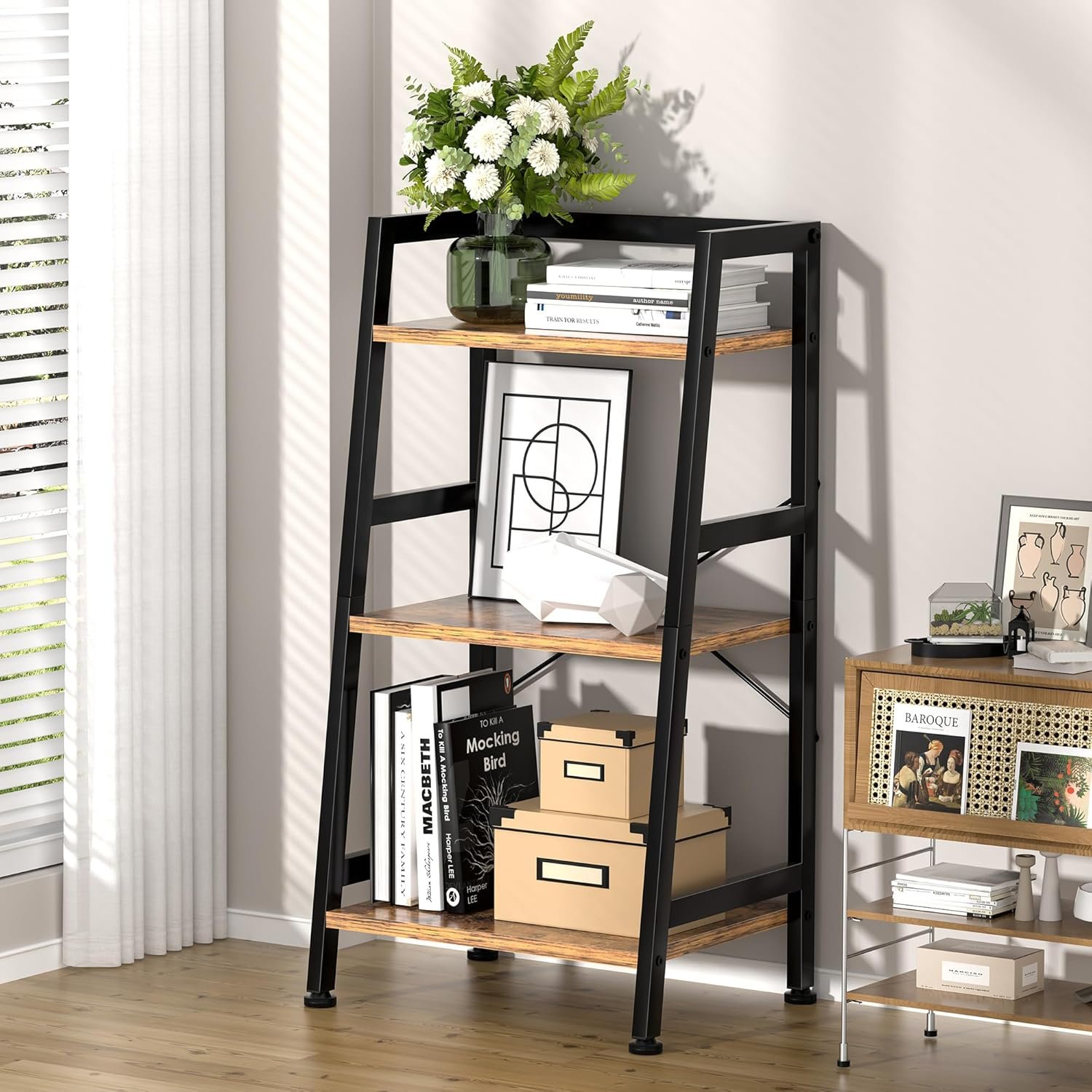 - [Space Saving Ladder Shelves] With compact design, the bookcases take up the minimal floor and make the most of diverse small areas.Thus the 3 tier book shelves own sufficient space to organize a variety of items. Not just as book storage, but as a treasure corner for your collections, albums or potted plants