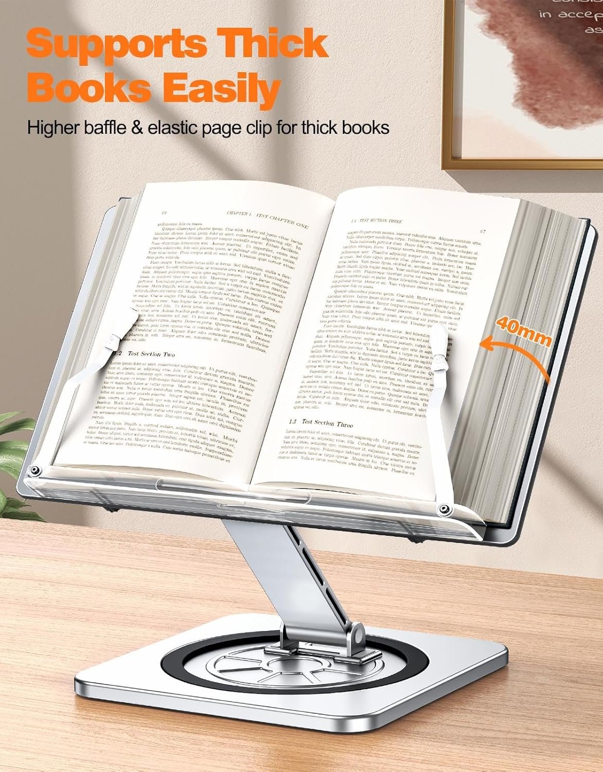 - Smooth 360° Rotation: Embark on a journey of unparalleled reading flexibility and stability with innovative 360-degree rotating base of our book stand. From browsing recipes to delving into multiple research papers, experience immersive and steady reading sessions like never before.