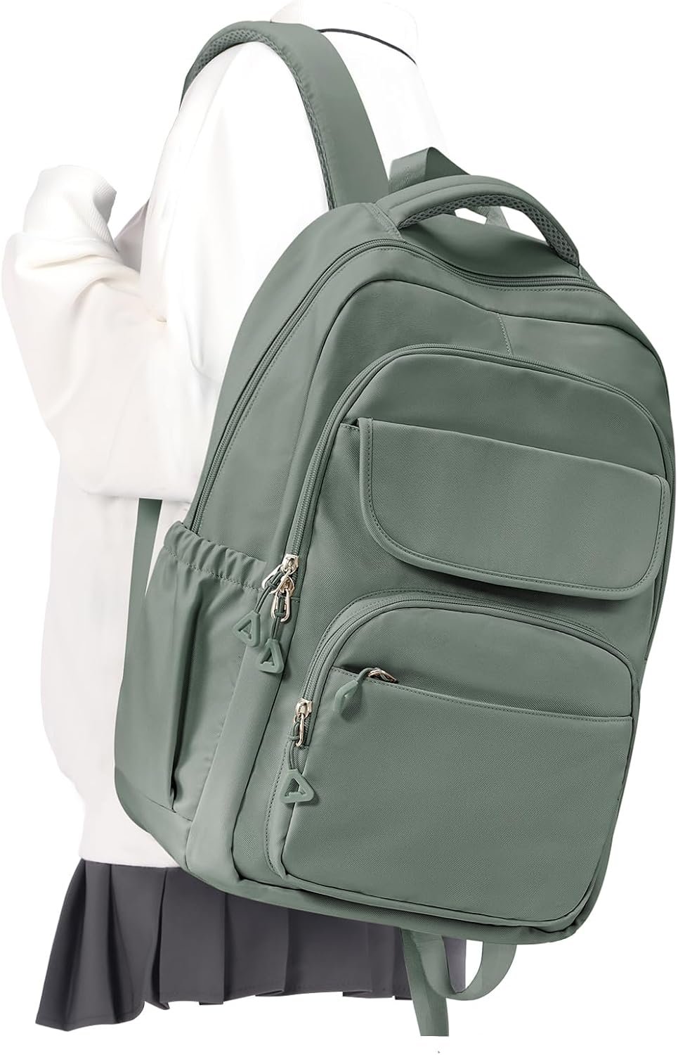 Cute School Backpack for Teens Girls Boys Waterproof School Bag Basic Backpack for College Students Multi Pocket Backpack Lightweight Casual Daypack Backpacks for Women Men(Green)