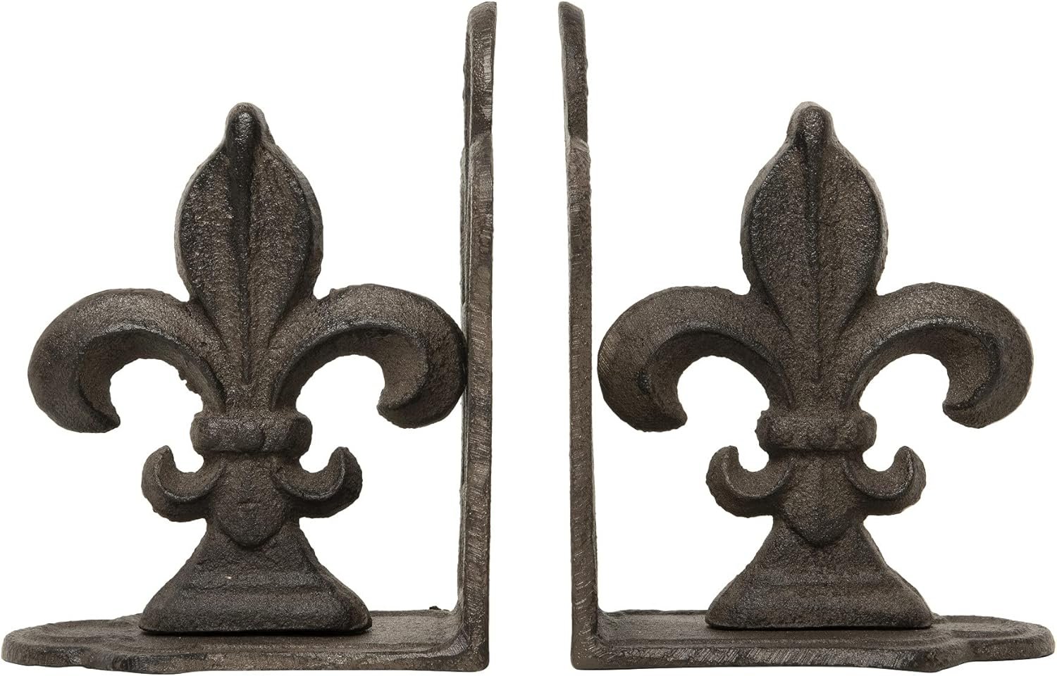 - Add some French-inspired elegance and charm to the bookshelf with these brown metal fleur de lis bookends